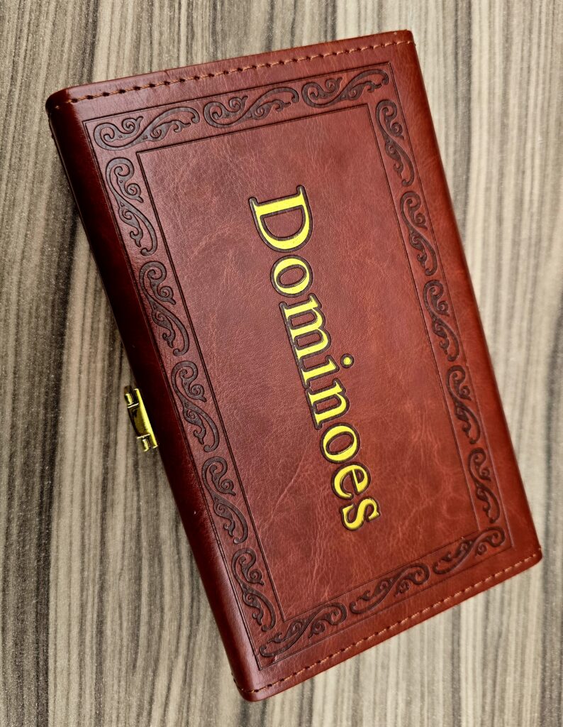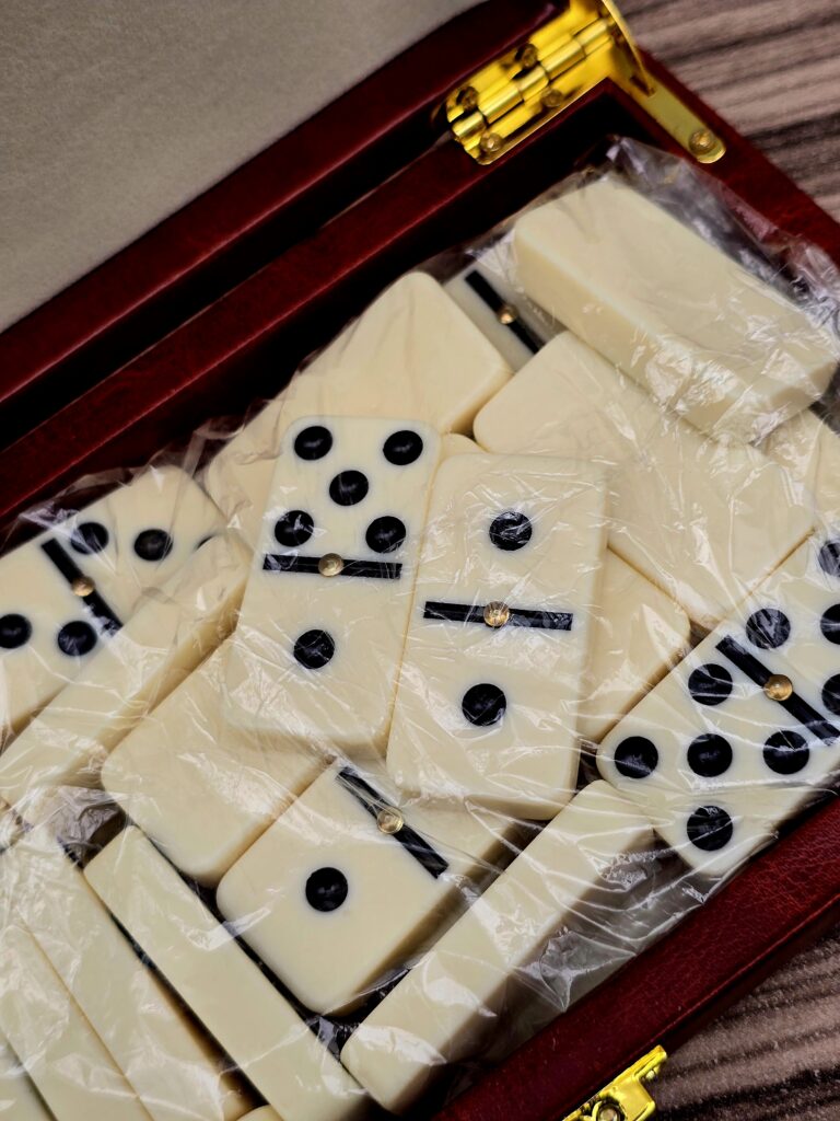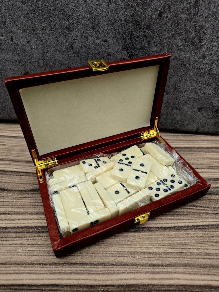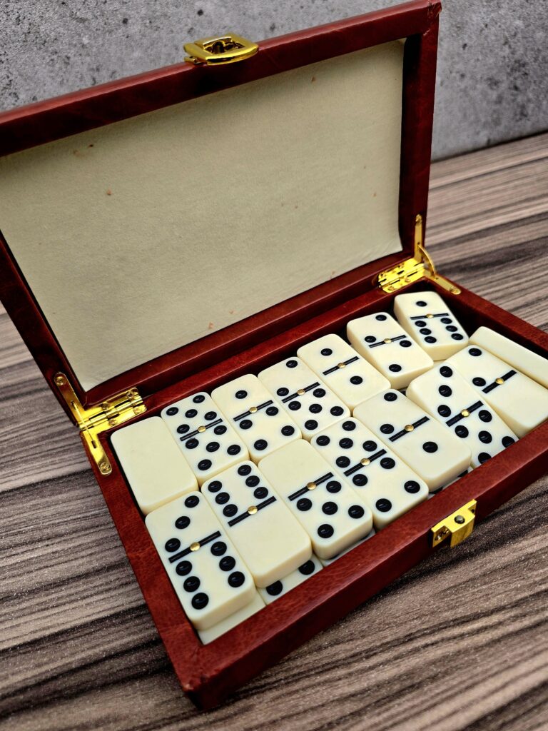 Ucieszyłbym się z pięknego domina w drewniany pudełku obleczonego materiałem przypominającym skórę.