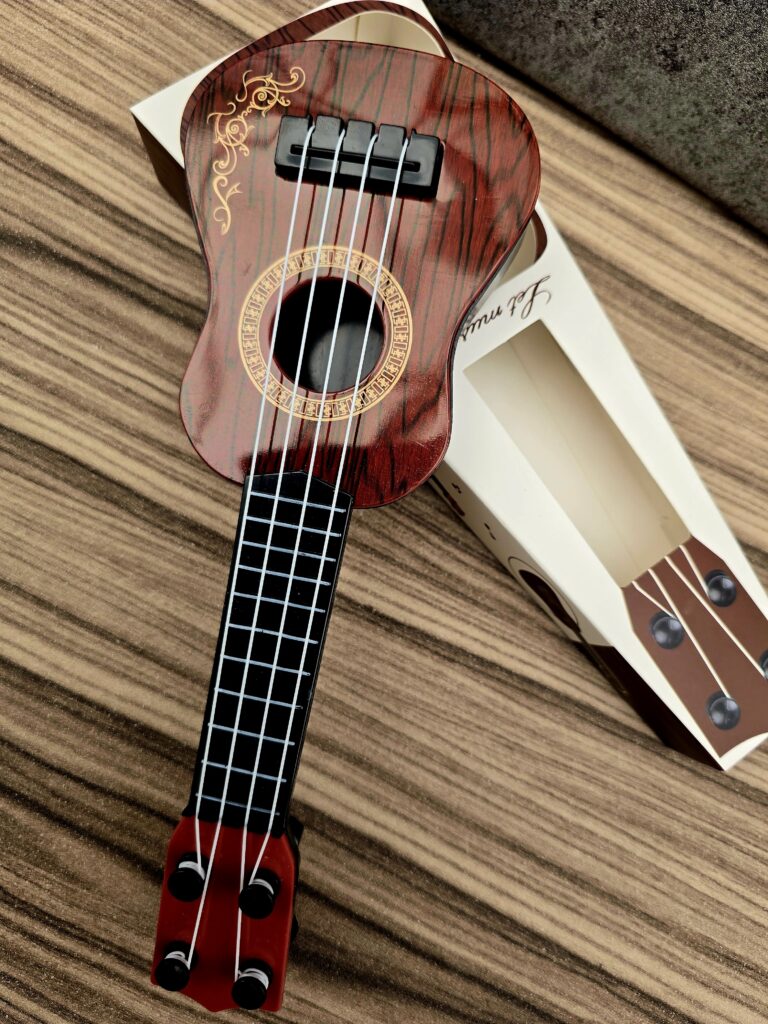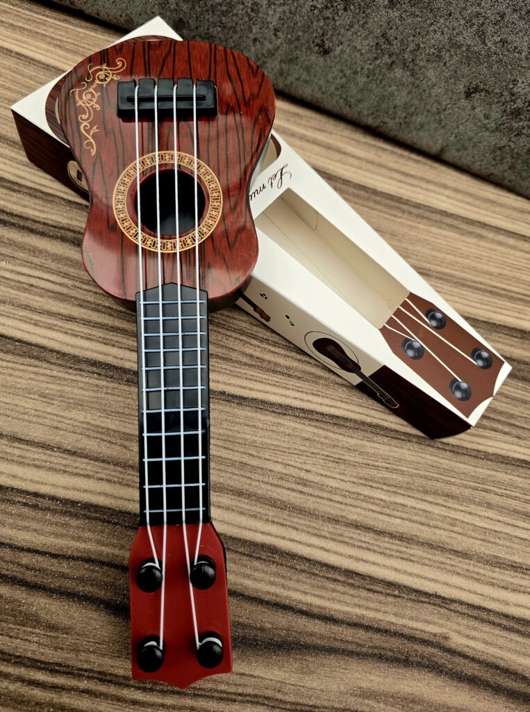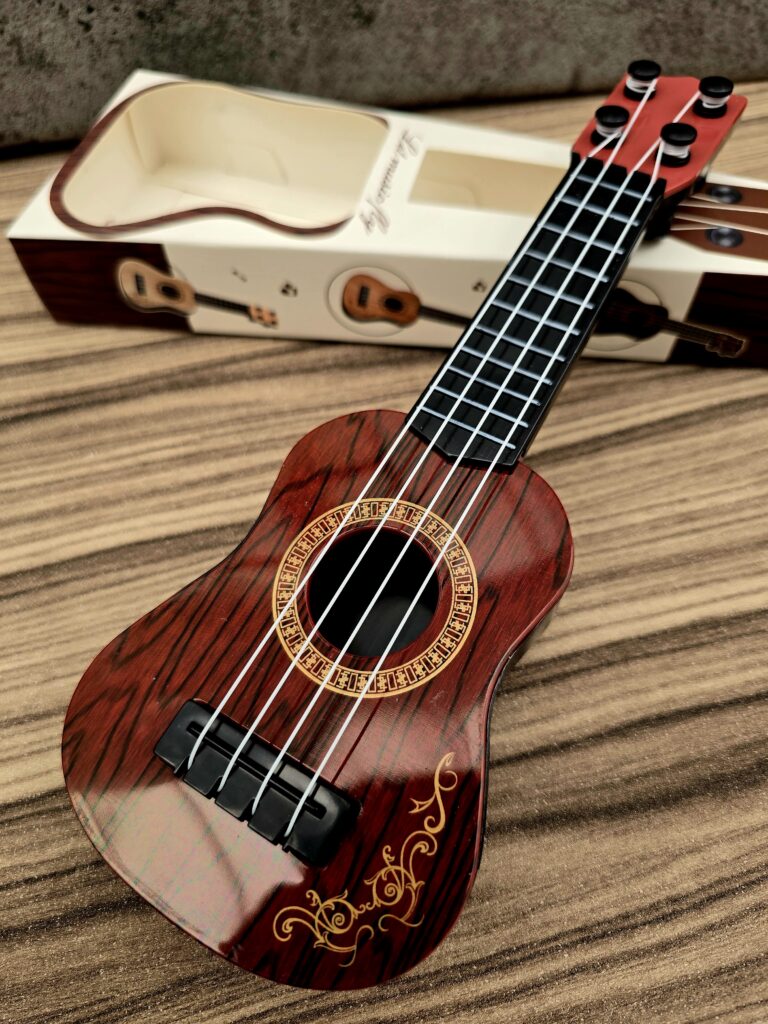 Pierwsze brzękolenia, szarpidruty a jednak gra. Gra się na niej całkiem przyjemnie jak na takim małym ukulele. Więc, gdy szukasz takiej prostej zabawki dla dziecka – oto ona gitarka od marki Jokomisiada.