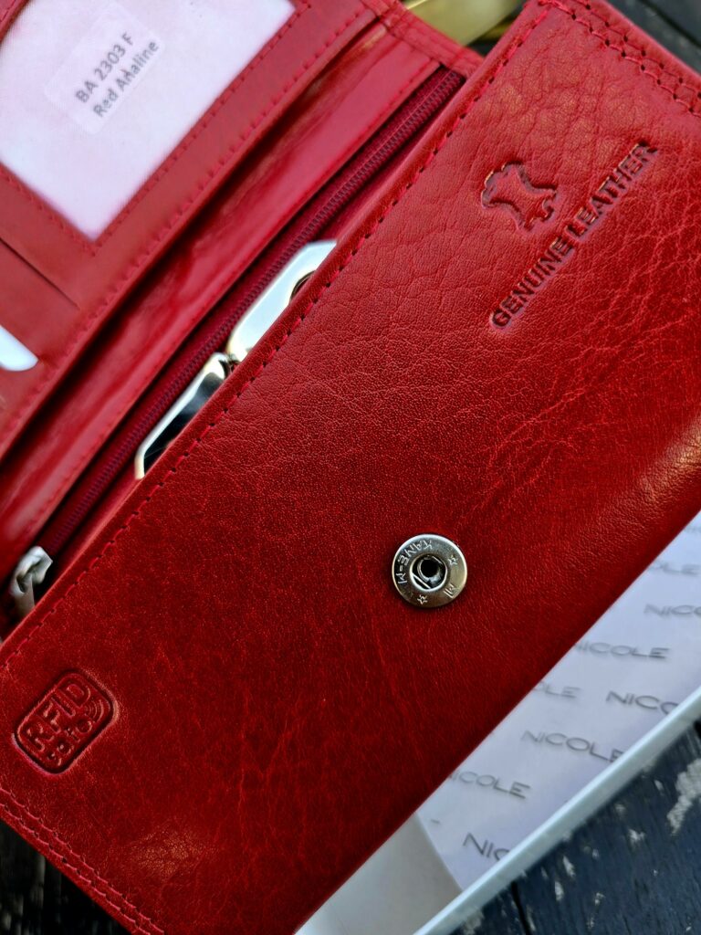 Lubię tu zapach skóry, którego brakuje wielu współczesnym portfelom. Kolor czerwony ponoć przyciąga pieniądze. Osobiście uważam, że przepięknie wychodzi na zdjęciach. Przepiękn w kobiecej dłoni. Czy dobry na prezent? Z pewnością.
