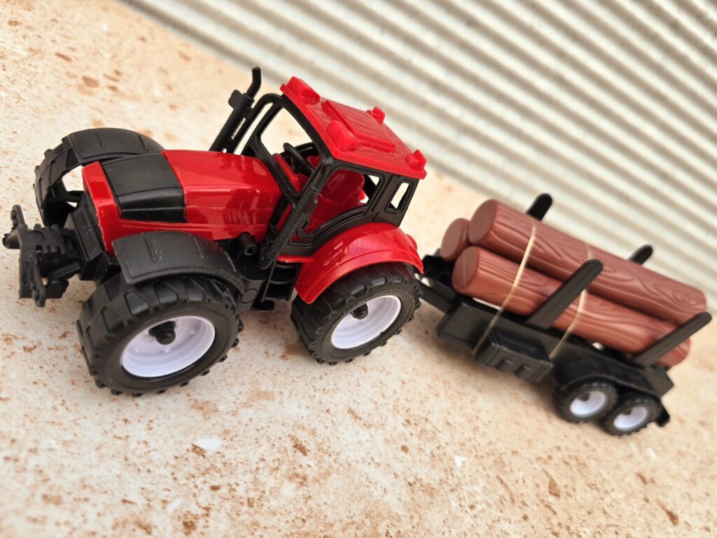 Gdy ktoś zapyta co polecisz na szybki impulsywny prezent dla Dziecka 3-5 lat, to ten traktor z balami drewna to jeden z super prezentów. Jest tani, funkcjonany i przede wszystkim sprawdzi się jako zabawka. Można wyciągać, zmieniać, odpinać po prostu cieszyć się z odgrywania roli i tworzenie scenariuszy jak można wykorzystać ta zabawka. Wiele radości, o której często zapominany wprost że świata wyobrazni.